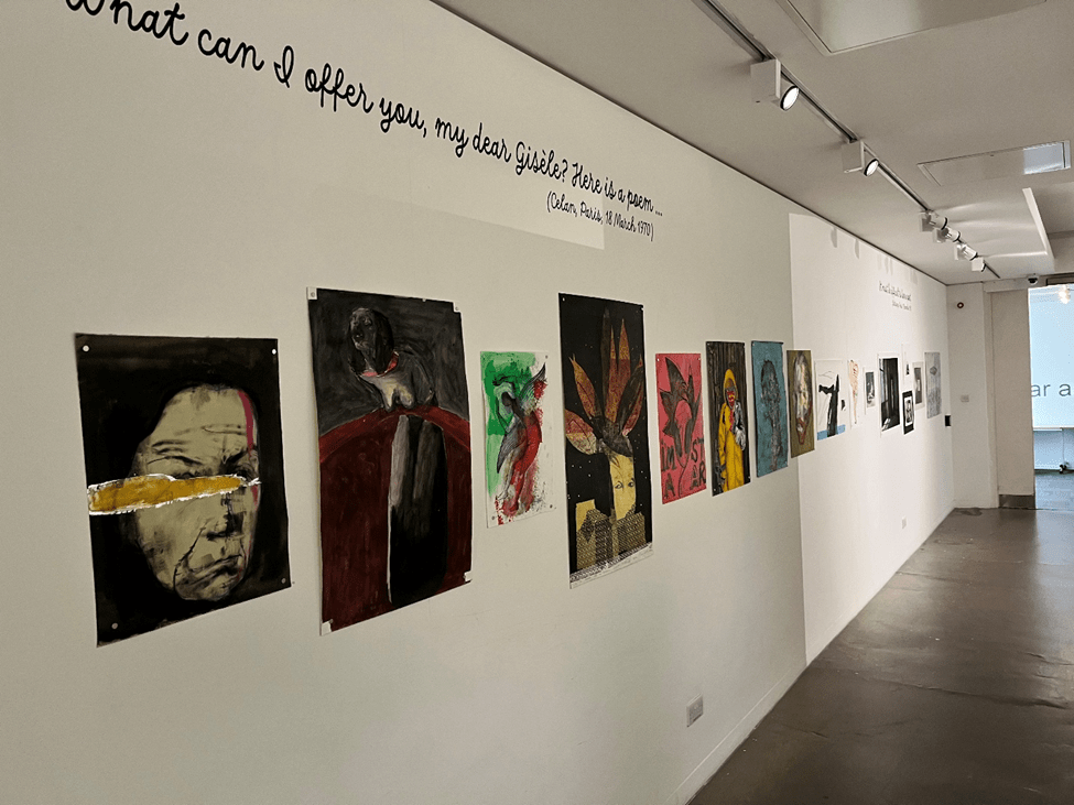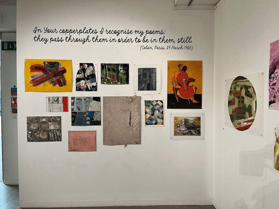 In 2020, the Beyond Other Horizons exhibition at the Palace of Culture, Iasi, Romania, showcased 84 artists from Romania and the UK, responding to Celan’s poetry, to celebrate 100 years since his birth. Curated by Peter Harrap, Anna McNay and Florin Ungureanu, in partnership with the Iasi Palace of Culture, Iasi ‘George Enescu’ National University of the Arts, and UCL SSEES, it focused on the themes of Walking, Language and Otherness.