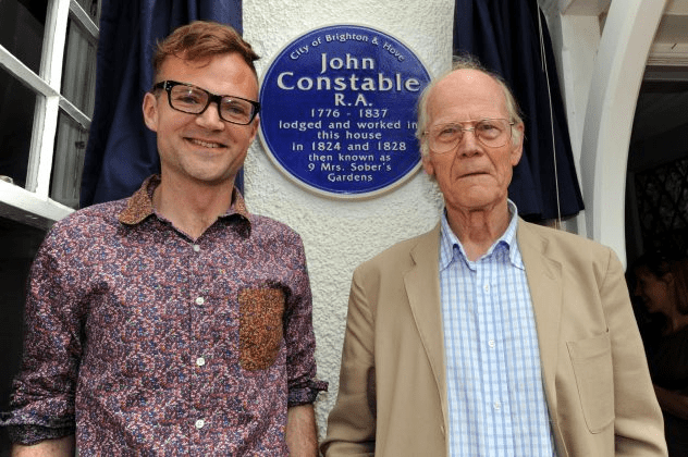 Fig 6. Peter Harrap with Richard Constable at the unveiling of the blue plaque to mark John Constable’s Brighton Studio, ( 2013 Brighton Argus ).